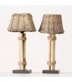 Wadiga Set De 2 Lampes à Poser Abat-jours Bois Esprit Bord De Mer