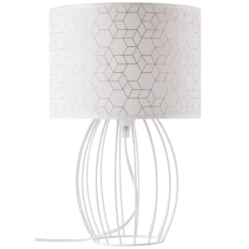 Maisons Du Monde Lampes à Poser Lampe En Céramique Blanche Et Abat-jour En Raphia Tressé Main