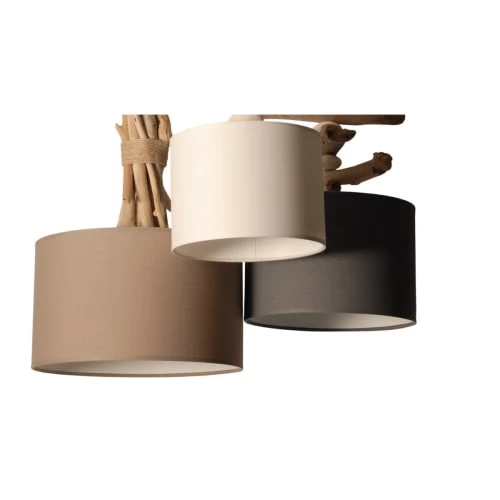Maisons Du Monde Suspensions Suspension 3 Abat-jours En Bambou Et Support En Métal Blanc