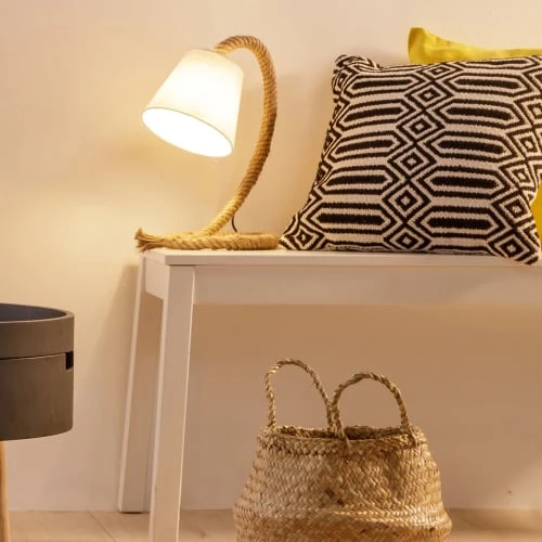 Maisons Du Monde Lampes à Poser Lampe En Céramique Blanche Et Abat-jour En Raphia Tressé Main