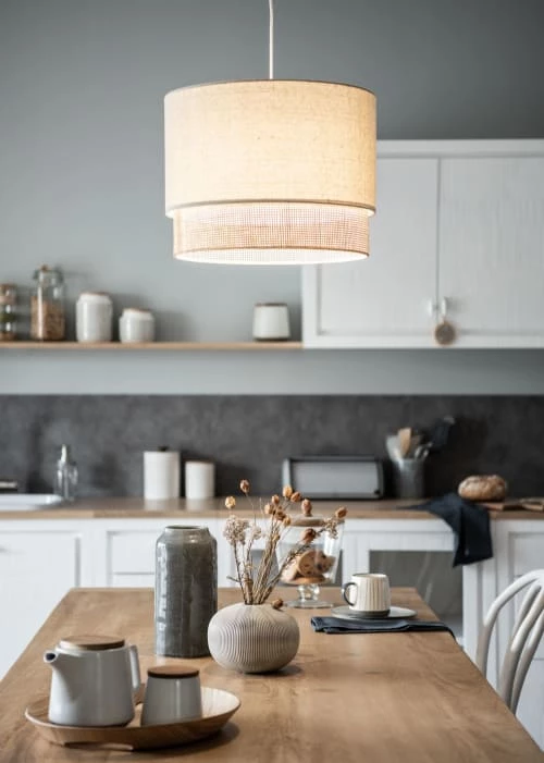 Diamètre abat-jour tissu/rotin : 40/37cm