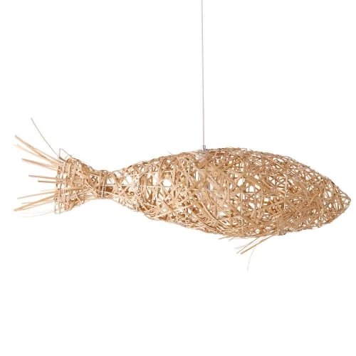 La mer s’invite chez vous avec la suspension poisson en fibre végétale PESCARA ! Créez une véritable ambiance cabane de pêcheur grâce à son tressage naturel et sa forme de poisson. Vous aurez l’impression d’être en vacances sur une île de rêve à siroter un cocktail et profiter de la chaleur du soleil. Complétez le look bord de mer en agrémentant votre suspension d’un canapé en lin lavé, d’un tapis en jute et d’une étagère blanche. N’hésitez pas à l’agrémenter d’objets typiques du style marin avec une jolie lanterne, quelques paniers en osier, du bois flotté et des touches de bleu. Ce luminaire sera comme un poisson dans l’eau dans votre déco !