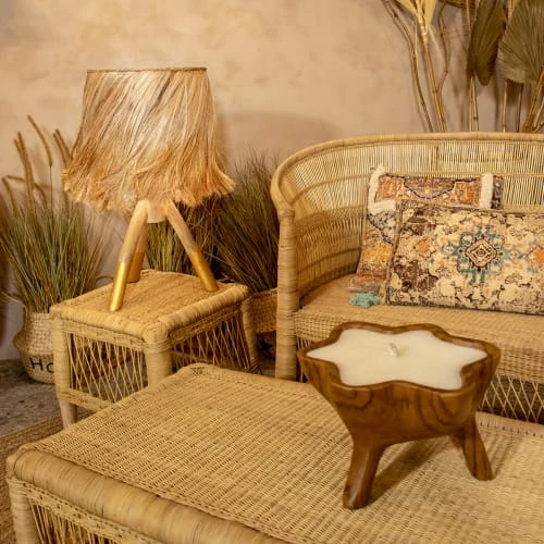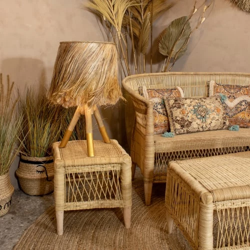 Maisons Du Monde Lampes à Poser Lampe En Céramique Blanche Et Abat-jour En Raphia Tressé Main