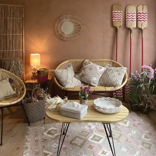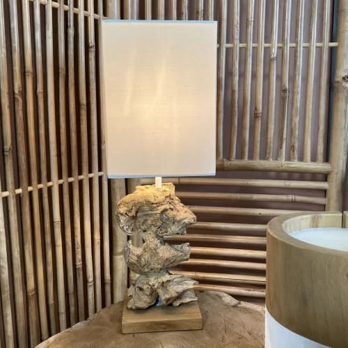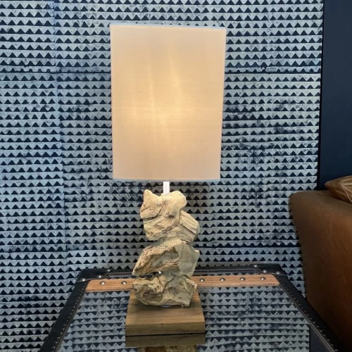 Maisons Du Monde Lampes à Poser Lampe En Céramique Blanche Et Abat-jour En Raphia Tressé Main